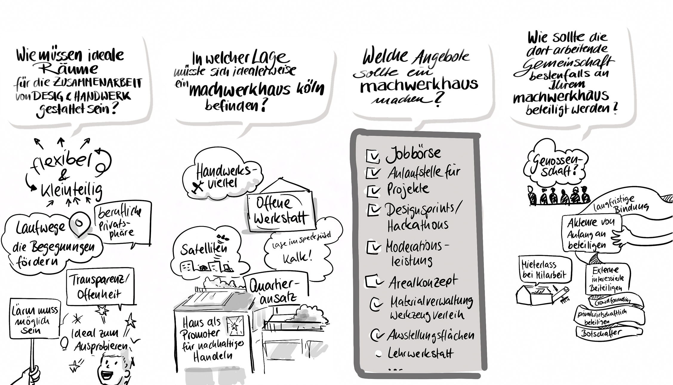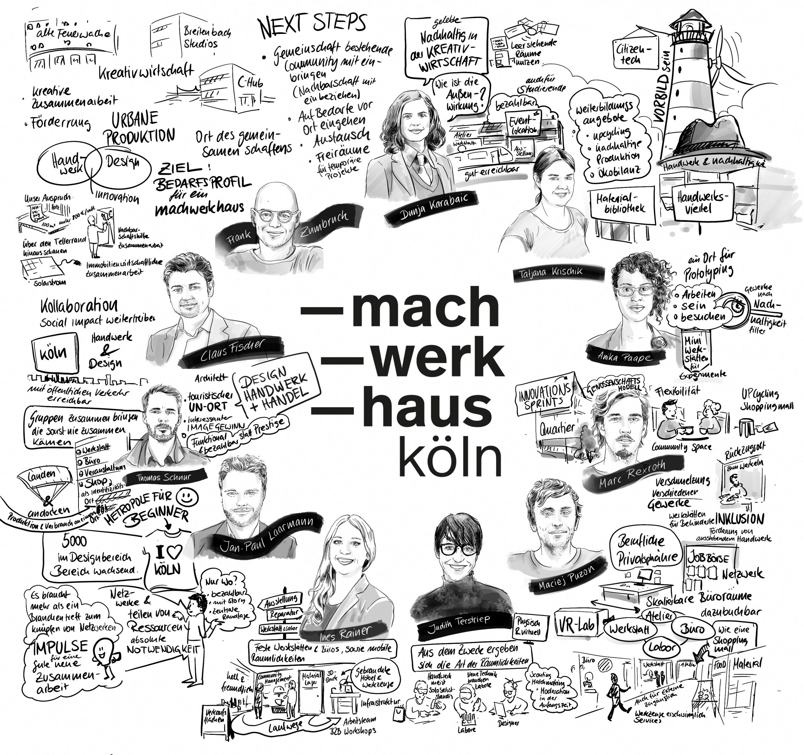 Gemeinsam mit Kölner Akteuren aus Design, Handwerk und aus nachhaltiger Produktion, mit Vertretern aus Wissenschaft und Forschung sowie aus der kommunalen und regionalen Kreativwirtschaftsförderung haben wir im Rahmen von Werkstattgesprächen und anderen Beteiligungsformaten über einen Zeitraum von zwei Jahren ein multifunktionales Nutzungskonzept für das machwerkhaus köln erarbeitet.